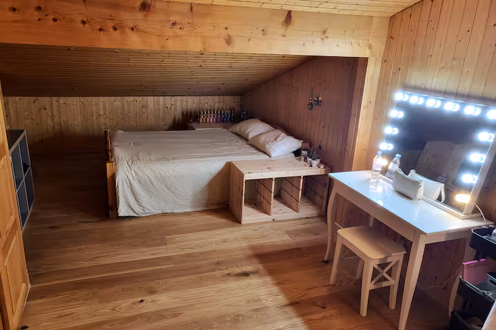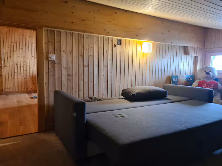Accessible directement depuis la chambre principale située à l’étage, cette chambre attenante dispose d’un canapé-lit confortable, idéale pour accueillir des enfants ou adolescents.
