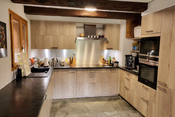 Véritable cœur de la maison, cette cuisine a été pensée comme un lieu de partage, de plaisir et de confort. Lumineuse et fonctionnelle, elle offre un espace agréable où l’on aime se retrouver, que ce soit pour préparer un repas convivial ou savourer un café en toute tranquillité.